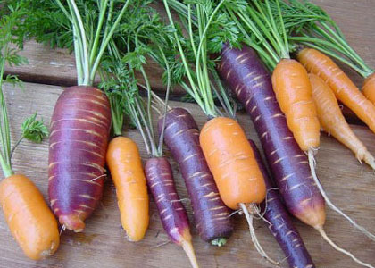 除卻藍莓,紫色胡蘿卜是含花青素最多的是蔬果。紫色胡蘿卜與一般的胡蘿卜特性、特征基本相同,所不同的果實顏色為紫色,營養價值高,紫色胡蘿卜被認為對健康更有益,除可防衰老功效之外,還可以預防心血管疾病和某些癌癥。