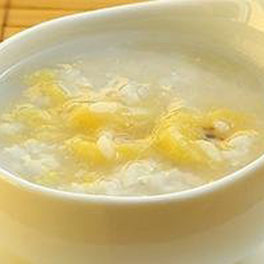 香蕉2個,大米50g,白糖適量。將香蕉去皮,擇凈,搗泥備用;取大米淘凈,放人鍋中,加清水適量煮粥,待熟時調(diào)入香蕉、白糖,再煮一、二沸即成。每日1劑,連續(xù)3~5天。可清熱潤腸,潤肺止咳。適用于痔瘡出血,大便燥結(jié),肺虛、肺燥咳嗽,以及酒醉煩渴,胃脘疼痛等。