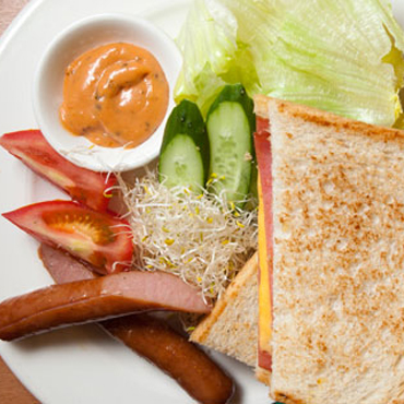 在連鎖早餐店最好選擇三明治類,而吐司夾蛋會(huì)比夾火腿好(火腿是加工品,鹽分比較多而且有添加劑。)